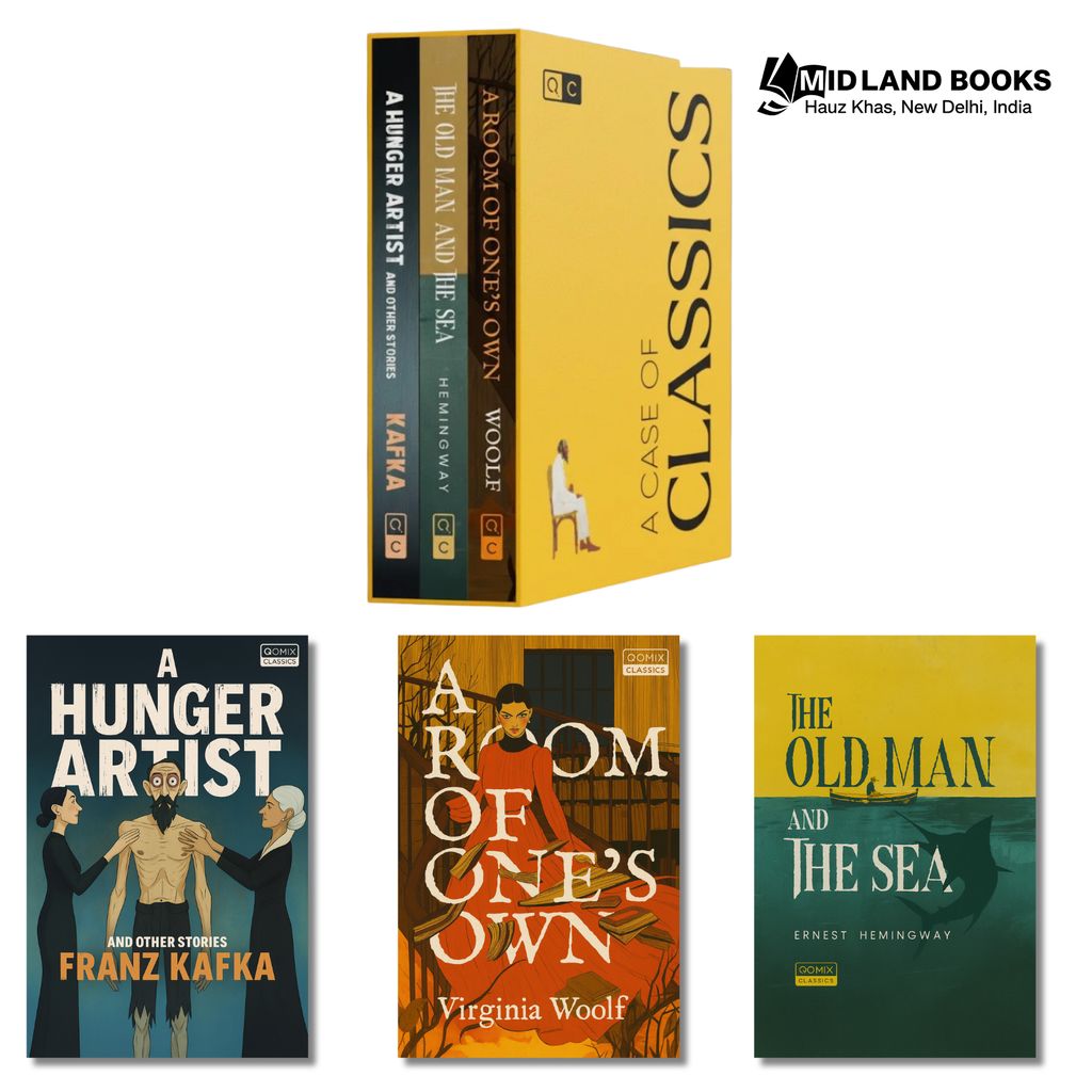 Step into the golden age of literature with A Case of Classics, an exclusive collector’s box set that brings together three of the most influential works ever written — The Old Man and The Sea by Ernest Hemingway, A Room of One’s Own by Virginia Woolf, and A Hunger Artist and Other Stories by Franz Kafka.
