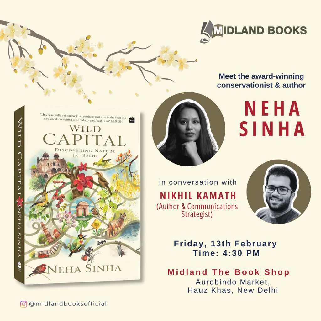 In her new book, Wild Capital, acclaimed nature writer Neha Sinha takes us on an unforgettable journey through the hidden wildernesses of the bustling metropolis of Delhi, where she finds wild creatures, ecological histories and a deep sense of meaning that bind us to the places we call our own. Exploring the city over many days and nights, Neha traces memories and the stories of extraordinary human lives, discovering centuries-old groves of trees and neglected rivers, mammal tracks and bird calls, words forgotten and then re-found.